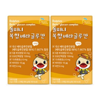 돌피니 복합베타글루칸 30포 1개월분 5종버섯분말 초유단백분말 15곡류효소 비타민D 아연 면역, 2박스, 90g