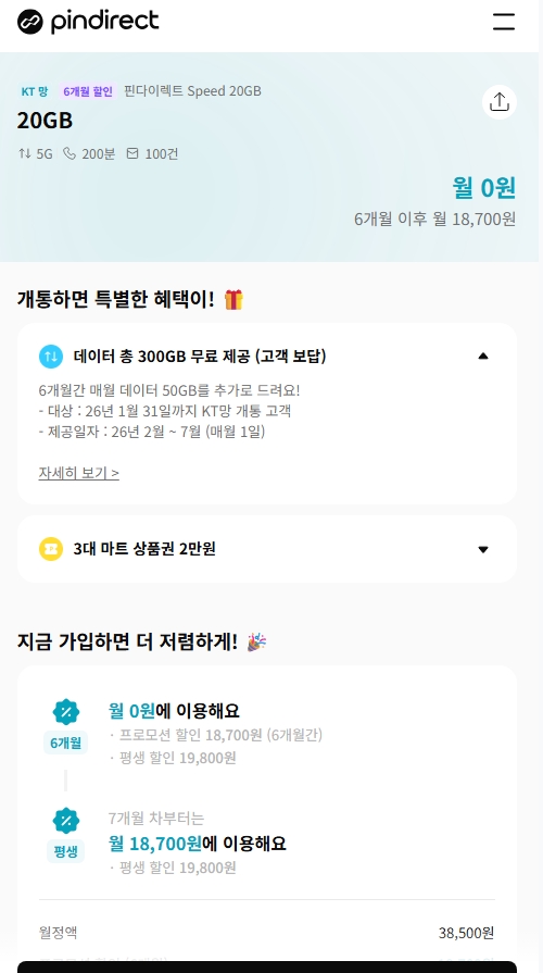 핀다이렉트SK망 120기가+5MPS 1100원, 11기가+2기가+3MPS 550원 KT망 20기가+50기가 0원 알뜰폰/뽐뿌 작성자 정보 관리자 쪽지보내기 메일보내기 자기소개 아이디로 검색 전체게시물 쪽지보내기 메일보내기 자기소개 아이디로 검색 전체게시물 작성 작성일 2026.01.16 19:09 컨텐츠 정보 804 조회 0 추천 0 비추천 목록 본문 무한 통신의 시작 Zhttps://www.yogeum.com/stkt341 0 추천 0 비추천 SNS 공유 관련자료 링크 https://www.yogeum.com/stkt341 215 회 연결 이전 핀다이렉트KT 20기가(2월~6개월간 50기가제공) + 바로유심 2만원 상품권 110원 총 70기가 작성일 2026.01.24 00:19 다음 알뜰폰) SK 알뜰망 100기가 5MPS 3300원 , 11기가+2GB+3MPS 2200원 작성일 2026.01.05 22:00 댓글 0 등록된 댓글이 없습니다. 로그인한 회원만 댓글 등록이 가능합니다. 목록