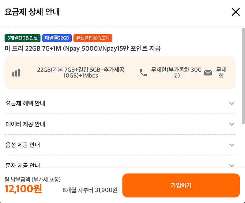 매달 5천 네이버페이 받으면 22GB+ 1Mbps